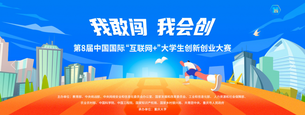 第八届中国国际“互联网+”大学生创新创业大赛由12个中央部委和重庆市人民政府联合主办。共有来自国内外108个国家和地区、340万个项目、共计1450万余人次报名参赛,参赛人数首次突破千万。大赛以“我敢闯,我会创”为主题,围绕“更中国、更国际、更教育、更全面、更创新”的总体目标,突出敢闯会创、突出“四新”引领,激发青年创新创造热情,并推动赛事成果转化,促进“互联网+”新业态形成,是一场共建共享、融通中外的国际双创盛会。