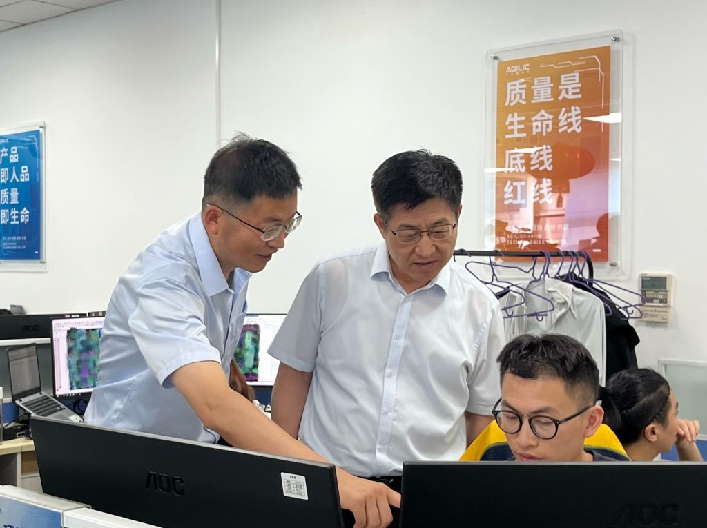 戴永康一行先后参观了91论坛展示区、研发办公区、产品测试区等工作区域,先后听取了91论坛发展历程、现有在售产品性能、在研产品进度和难点等方面介绍,并不时与91论坛研发人员详细沟通,了解目前卡脖子领域取得技术突破的实际痛点。