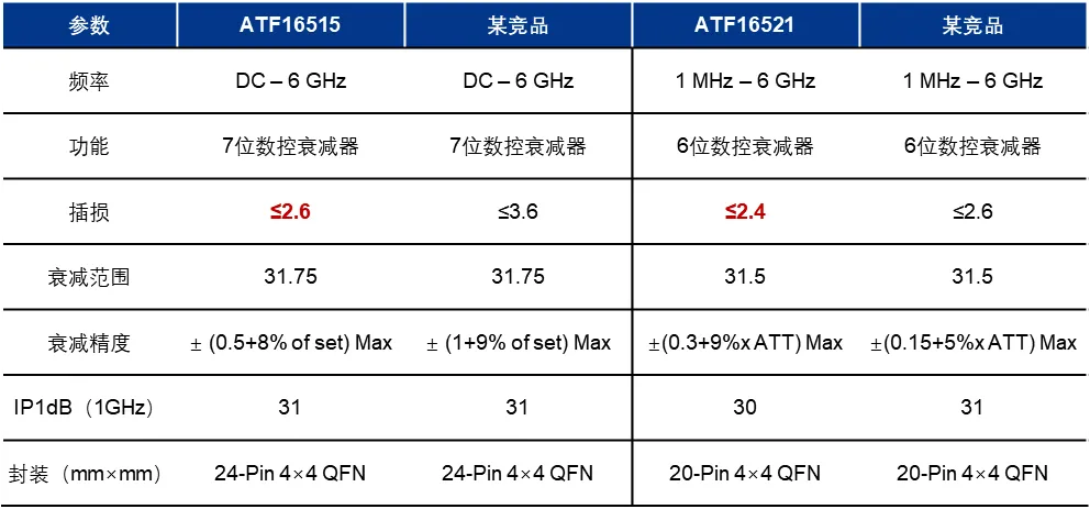 ATF16515和ATF16521采用SOI CMOS工艺,芯片皆具高线性度、高精度、快速切换等优势,以及更低的功耗和插损,有效提升了衰减器的工作性能。