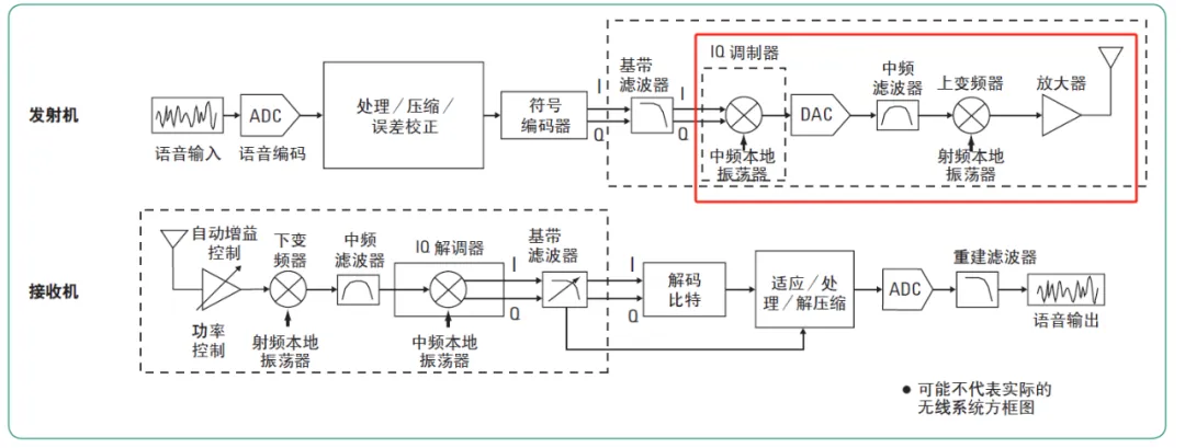 以上图发射链路为例,矢量信号由数字基带调制进入DAC(数模转换器)后,再进入上变频器和功放放大即可完成发射过程。但在实际电路中,由于发射电路本身的不理想特性,例如功放的非线性特性和上变频的杂散,矢量信号会在发射过程中发生畸变,原有的矢量会偏离理想位置。