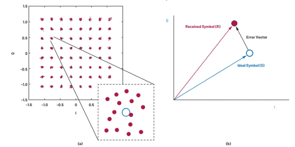 首先,EVM是误差向量幅度(Error Vector Magnitude),用于量化理想信号与实际发射信号之间的差异,是量化矢量信号质量的主要指标。