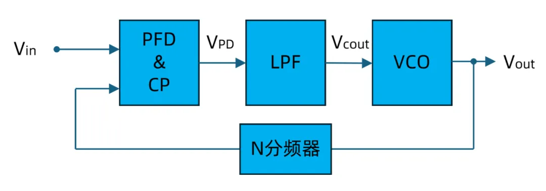 综上,在锁相环工作环路中,鉴频鉴相器比较输入参考频率和反馈频率的相位差,通过电压通断的形式传输给电荷泵,进而对环路滤波器进行充电和放电,形成压控振荡器的控制电压,对振荡器输出信号的频率进行控制,振荡器输出频率又经过N分频器,反馈给鉴频鉴相器。周而复始,控制整个系统的输出信号保持稳定。
