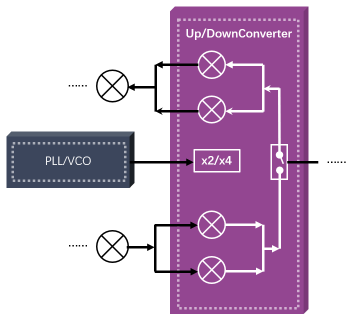 - 混频器(Mixer):负责将输入信号与本振信号进行混频,产生上变频或下变频的信号