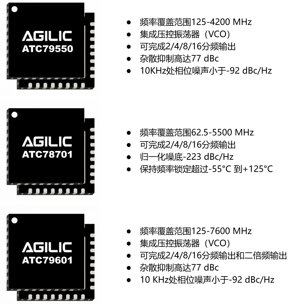 - 产品均具备宽广的频率覆盖范围和灵活的分频能力,能够满足不同应用场景的需求。无论是低频段还是高频段,都能提供稳定的频率输出。